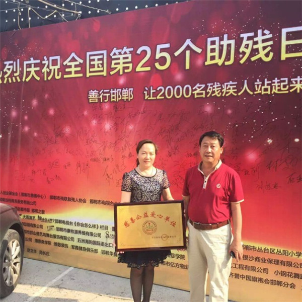 2015年5月17由河北省殘疾人創業基金會邯鄲市慈善中心、邯鄲市殘聯肢體殘疾人協會、邯鄲電視臺公益聯盟欄目共同發起,善行邯鄲"讓2000名殘疾人站起來"大型公益活動,聯合社會各界愛心人士,愛心單位伸出援助之手,讓更多的殘疾朋友能夠站立起來。